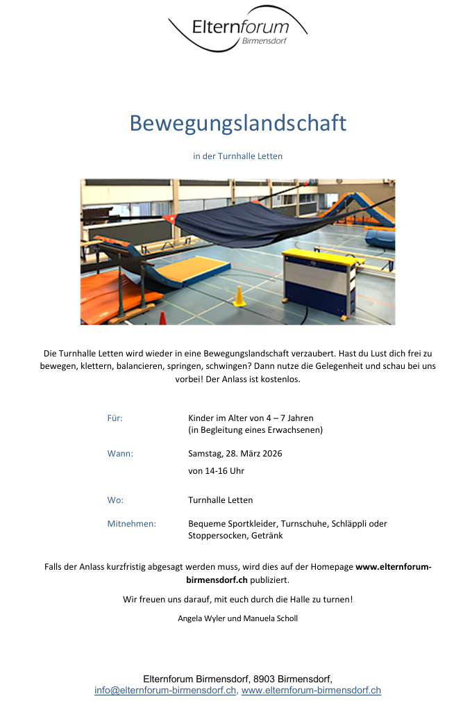 Willkommen beim Elternforum Birmensdorf!